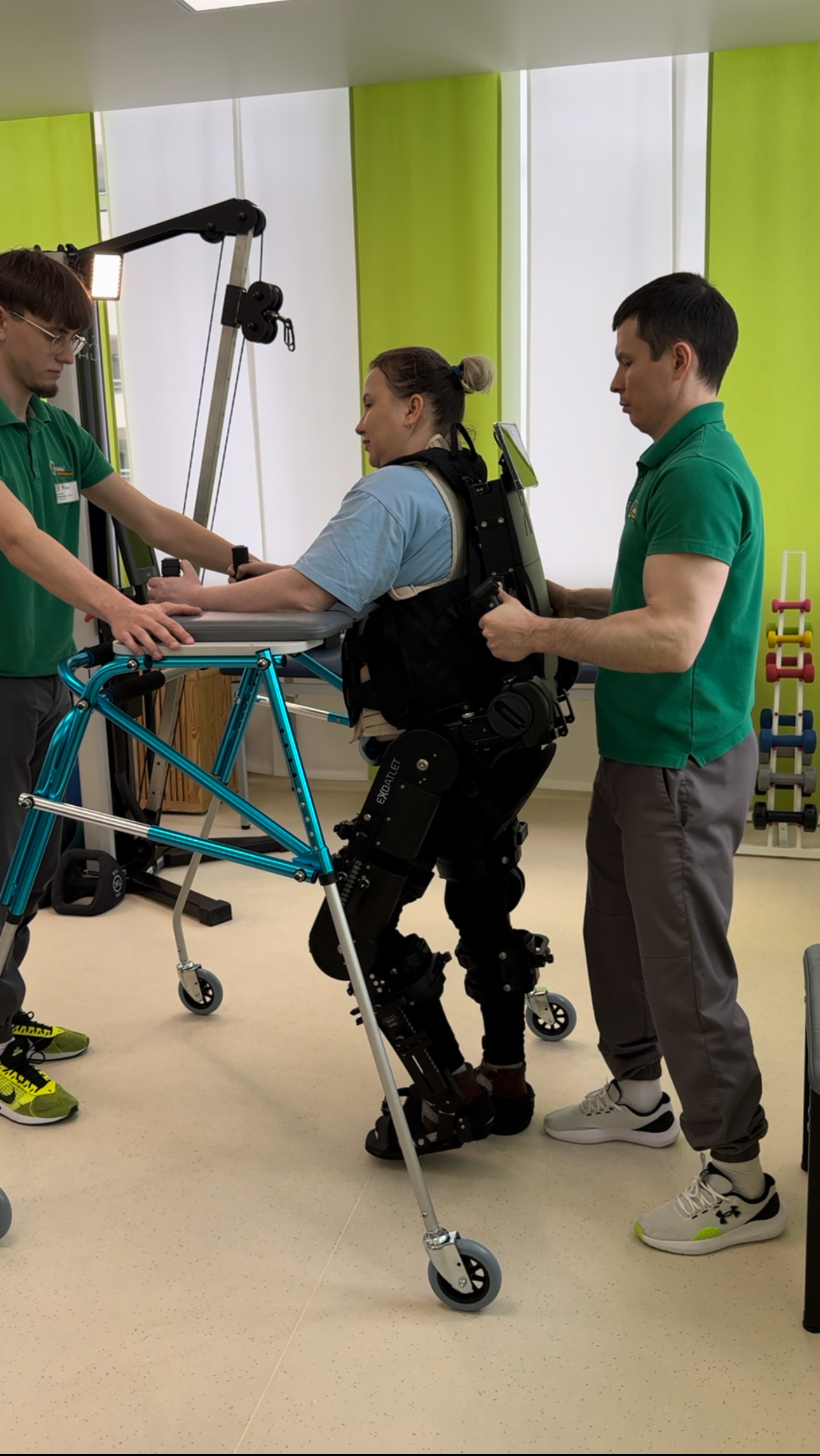 «Робот помогает вставать и идти на разные дистанции. Но это очень непросто, человека нужно подготовить. Сначала мы делаем упражнения в положении лежа, потом в положении стоя. Потом мы начинаем ходить на месте. Для этого у нас тоже есть уникальное оборудование — локомат. Когда человек уже на беговой дорожке научится ходить, контролировать свою ногу с поддержкой, с разгрузкой веса тела — только тогда мы его перемещаем в экзоскелет», — говорит Ольга Хамидулина, врач травматолог-ортопед, кандидат медицинских наук, заведующая отделением медицинской реабилитации клиники «УГМК-Здоровье».