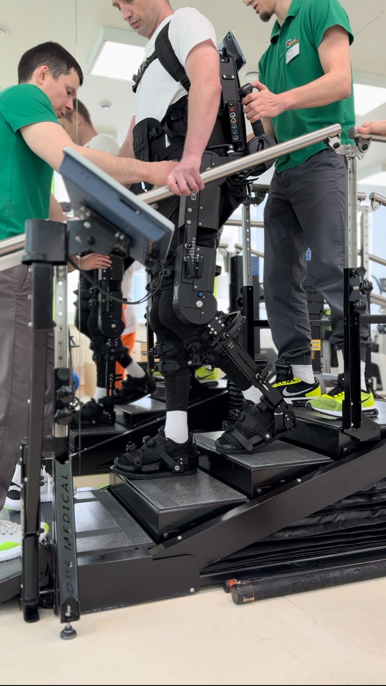 Настраивается робот под индивидуальные параметры пациента, дает возможность тренировки ходьбы и по лестнице, и по неровным поверхностям. Выдерживает даже большой вес пациента, может работать много часов подряд.