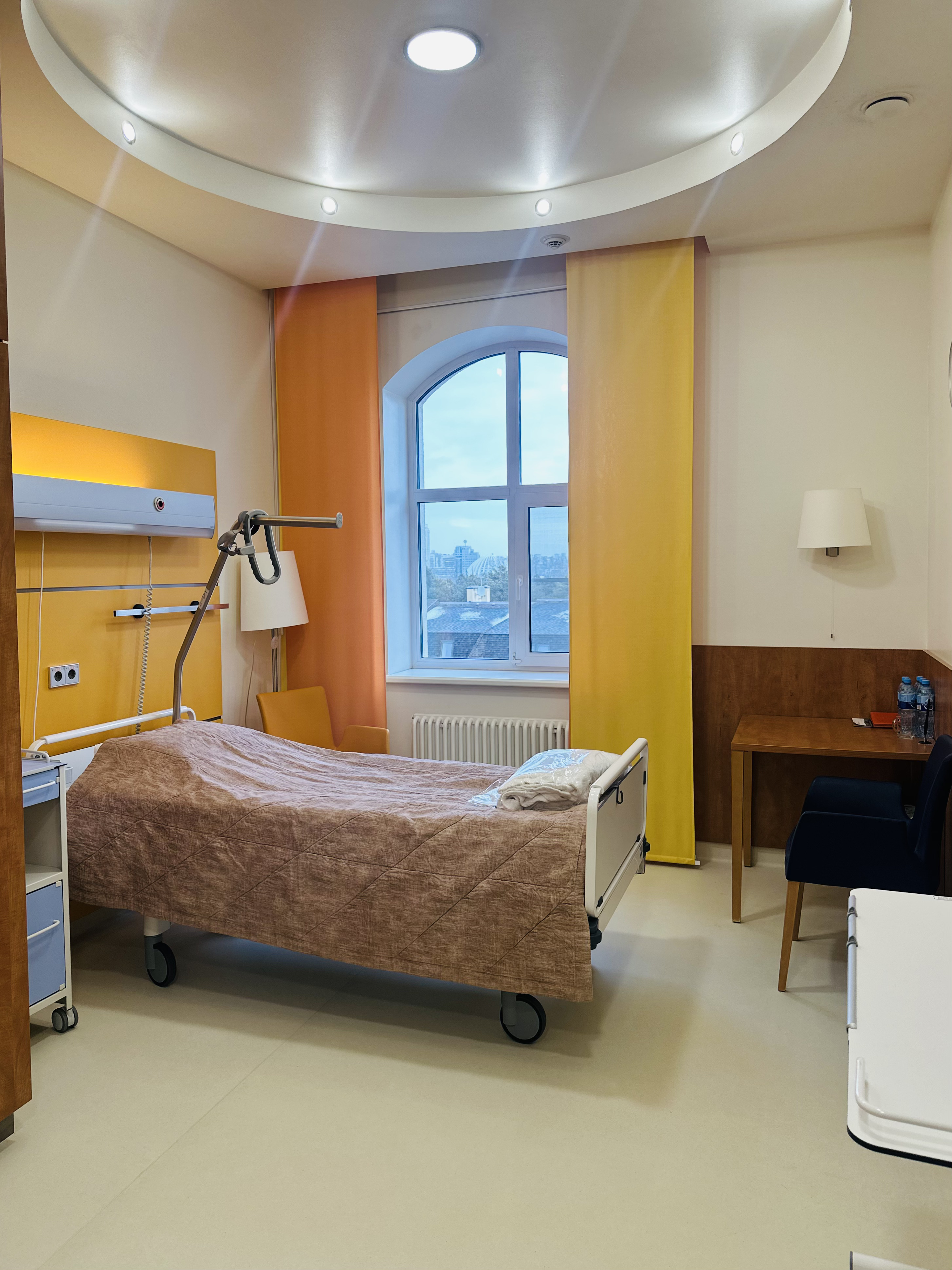 Палаты нашего стационара сравнимы с номерами четырёхзвёздочного отеля и оборудованы всем необходимым для удобного пребывания пациента: